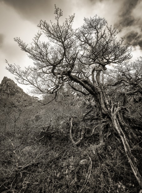 An out-of-season Deciduous beech (Nothofagus gunnii) or the "Fagus" tree tangled in back country behind Cradle Mountain, Tasmania
