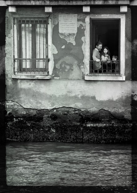 Travelling along the Venetian Canal, this family were having a lovely time looking out the window