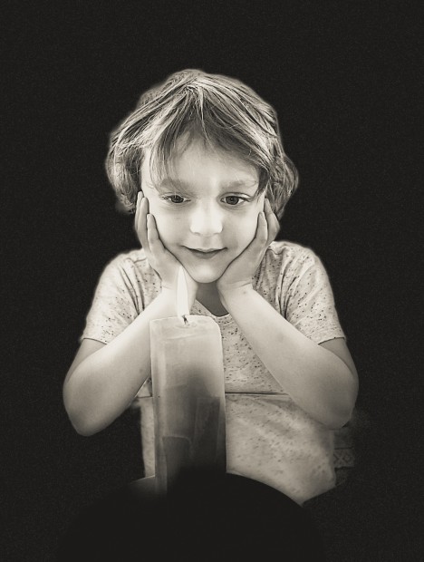 Child fascinated by the flame of a candle