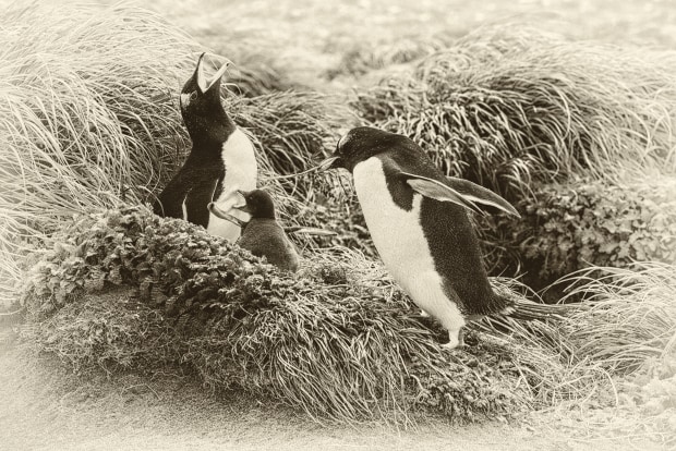Gentoo Penguin family at feeding time on Macquarie Island.