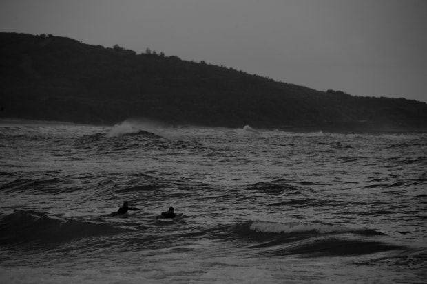 Early morning surfers at Catherine Hill Bay near Lake Macquarie.