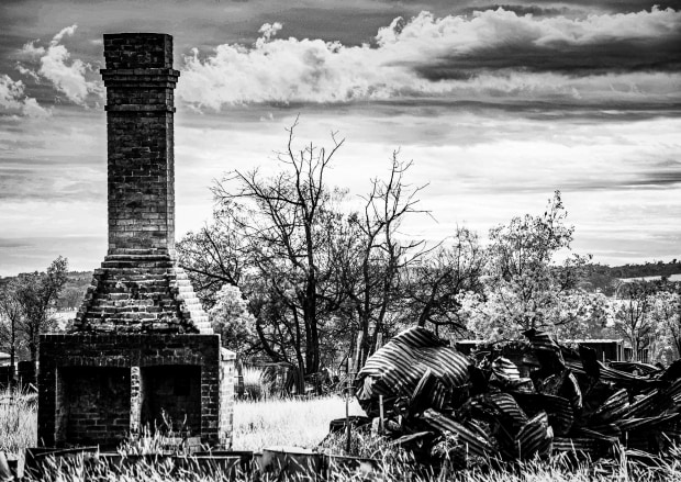 Burnt down old house that has a standing Chimney