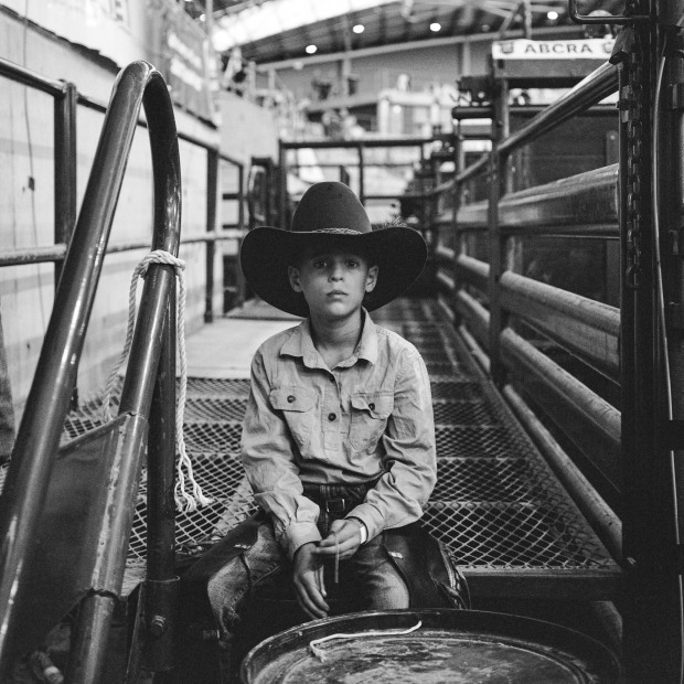 I've come to learn a lot about rodeos. Boots, tucked shirt, and cowboy hat are all, of course, de rigueur. I've not seen animals suffer, but plenty of humans. It's a tough, unforgiving sport with none of the niceties of most, such as changerooms with ice baths and physio to take the pain away. Instead, these part gladiator, part entertainers, receive nor expect nothing more than the raw earth upon which they stand to ply their craft. In these places, beneath the stalls of the arena, wedged between the chute and stock pens, many of my photographs were taken. I thank all the subjects for accepting me in their domain, many in a moment of focus before entering their colosseum, others staring straight through my lens as if I was not there. This junior competitor was a classic example.