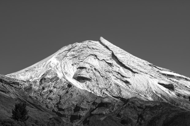 Mt Taranaki wears its new seasonal winter shawl.