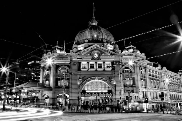 A night time shot of the iconic Flinders Street Station, Melbourne.