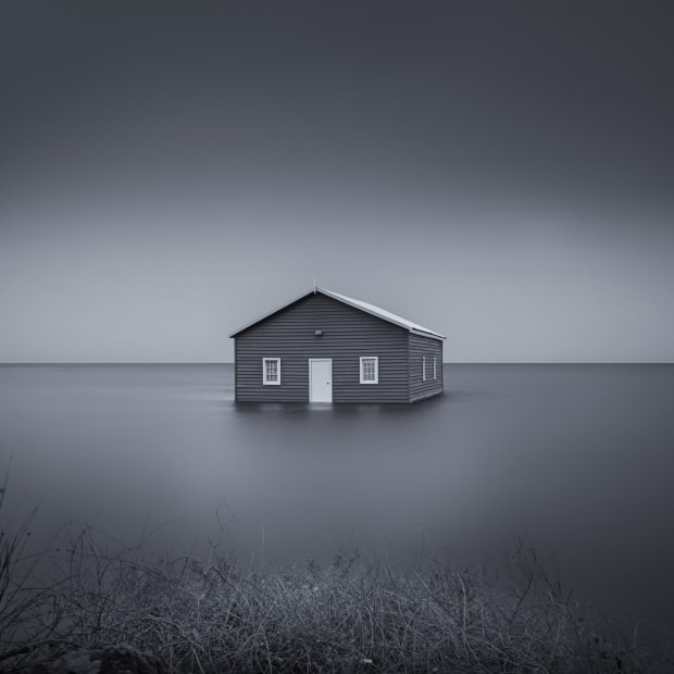 The iconic Crawley Boatshed on the Swan River, Perth during a winter flood and storm surge