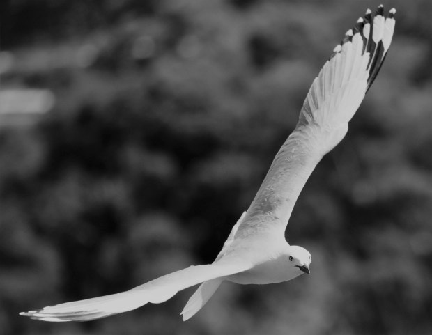 A male Silver Gull in full flight ready to fight off a predator.