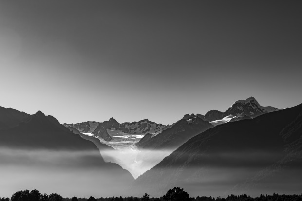 RICHARD GREENLAND, Fox Glacier Mt Cook Foggy Morning (PLACES 2024)