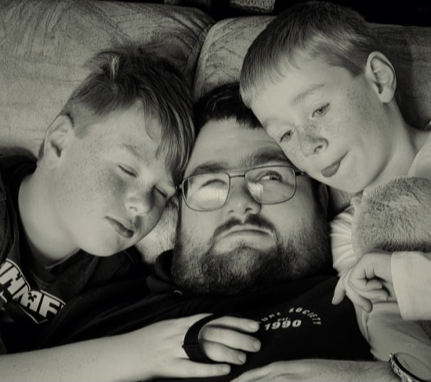 An image of my nephew and his 2 boys relaxing. Permission gained to use photo.