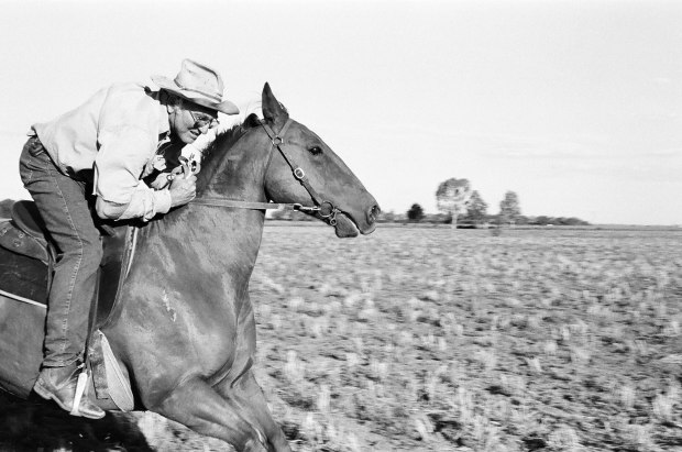 Man galloping through the paddocks