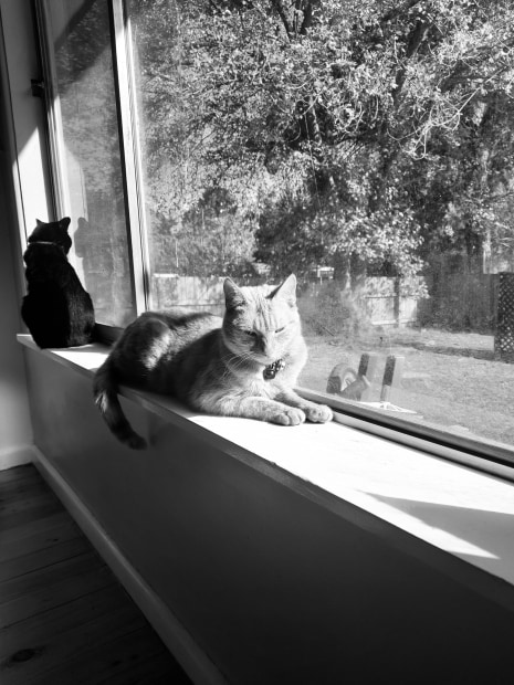 Two cats on a window sill.