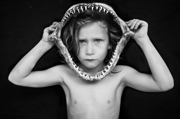 A portait of my daughter with the jaws of a tiger shark. I love the juxtaposition of the sharp and jagged shark teeth framing my daughters sweet face. I also love the defiant and fierce look in my daughters eyes.