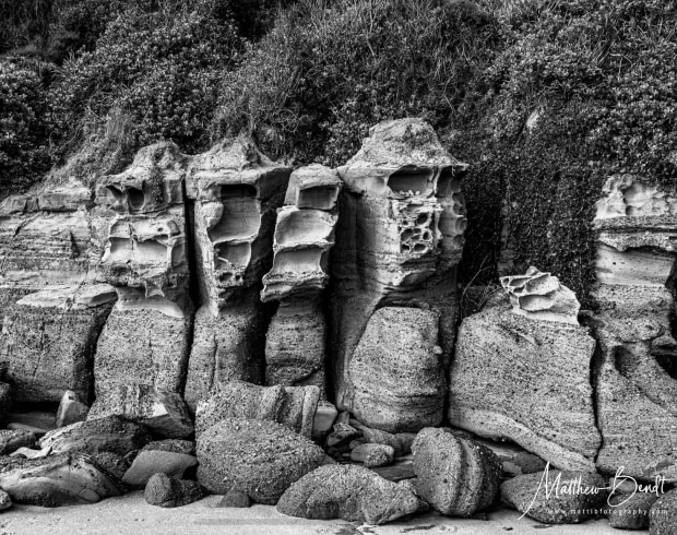 Rock formations on the beach facing seaward and looking like ape shapes guarding our coastline on the Central Coast NSW