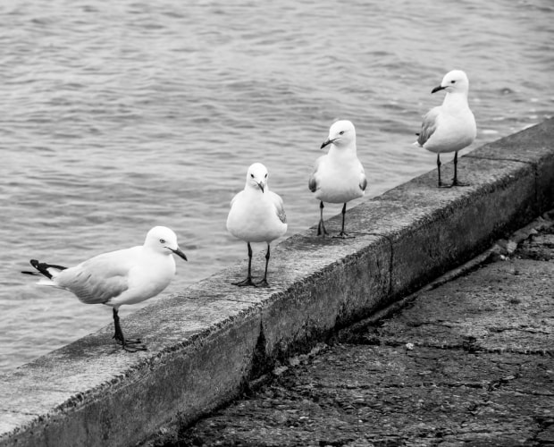 These birds reminded me of a bunch of old ladies gossiping. The bold line of the concrete dividing the photo in half really got my attention. They all had their back to the water, facing the same direction. Taken with a Nikon Z5. ISO 100, f8 1/250 sec