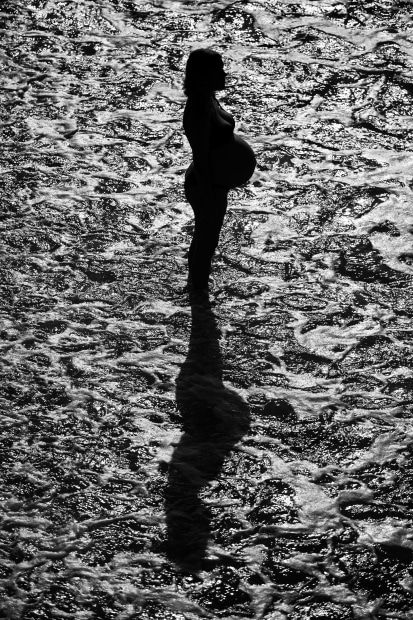 Photo of a pregnant friend from our local jetty. f 2.8 t 1/8000th iso 100 sing a canon 5d4 and 70-200 2.8 ii . Lining up the subject with the rising sun to create a dark silhouette and merge this with the shadow on a background of foamy water . avoided the temptation to lighten the subject to avoid the distraction of the swimmers.