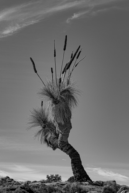 This is a very old grass tree still alive in the Flinder's Rangers of South Australia. It has outstanding shape and a contrast against the arid landscape.
