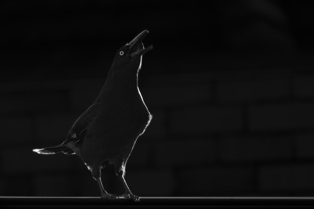 Currwong greeting the day in my front garden