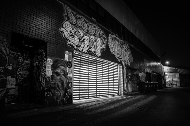 A smoky and hot late January night in the artwork covered laneways of Coffs Harbour. Canon EOS R, Tamron SP 24-70mm F/2.8 Di VC USD G2 5 sec, f10.0, ISO I00, on tripod