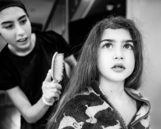 An environmental portrait captured as Lani began to brush her little sister’s hair in preparation to add some colour on the ends.