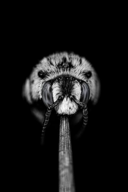 Roosting for the night, this Cuckoo Bee uses its mandibles to clasp onto it's perch for the night