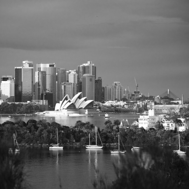 The buildings of the city of Sydney make a striking backdrop to the waters of Sydney Harbour, seen from Taronga Zoo
