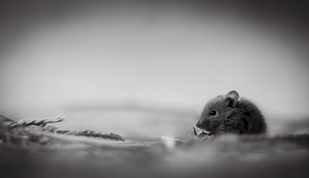 I spotted this little field mouse darting back and forth from under a hay bag to pilfer seeds