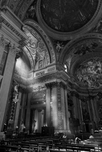The Church of Saint Ignatius of Loyola in Rome is illuminated by a single, almost spiritual, beam of light