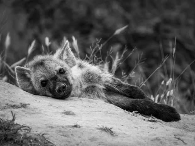 This hyaena is from a recent trip to South Africa. It was stretched out sleeping but eventually woke up and looked at my vehicle enabling this shot.