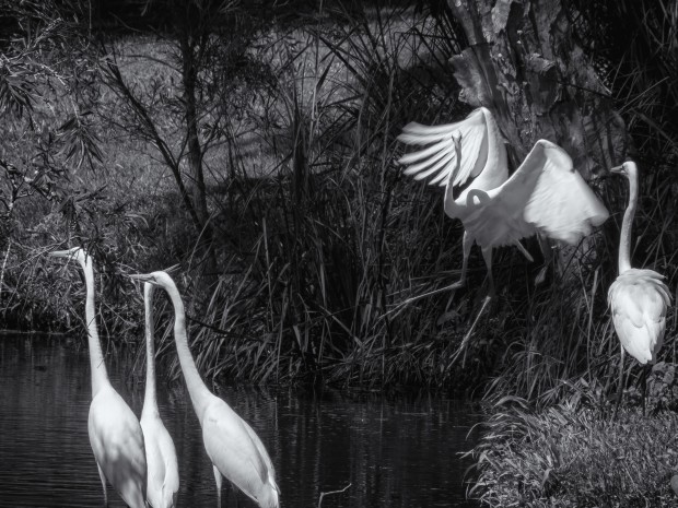 Had the pleasure of watching these egrets 'frollicking' at a lagoon. Unfortunately it was over very quick.