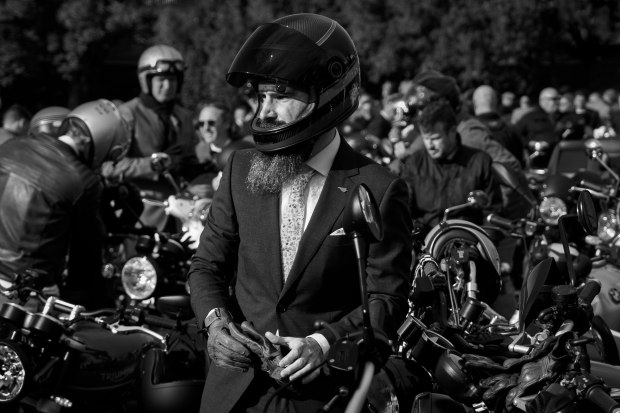 "Dapper" is the dress code for participation in the Distinguished Gentleman's Ride motorcycle rally, which is an annual global fundraiser for men's health. This rider and his magnificent beard fit the criteria perfectly.