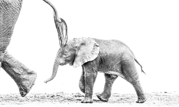 Amboseli NP, Watching a herd of elephants doing a big swim across a lake. This little boy was the last to come of the water.