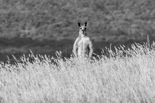 A kangaroo in the wild - a large male with huge biceps, stood staring at me for quite awhile