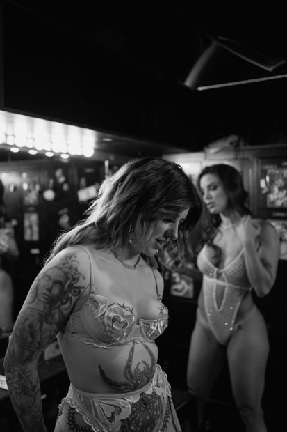 Reggie and Rachel, taking a moment between getting ready in the locker room of the strip club. In a place away from the usual gaze of the patrons.