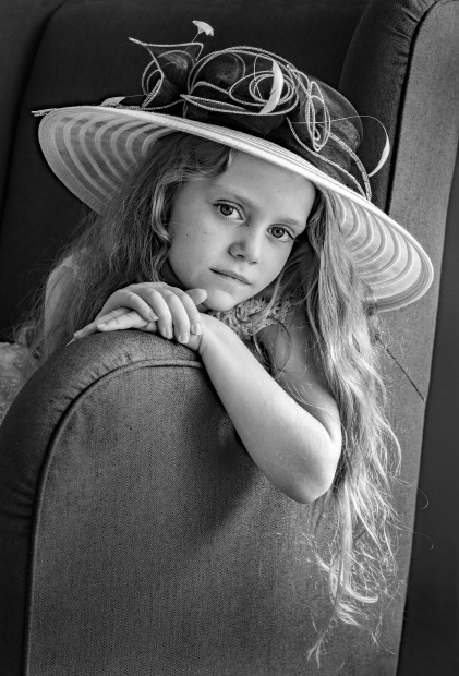 Grahame Smith, Isabella Wearing a Black and White Hat BW (People)