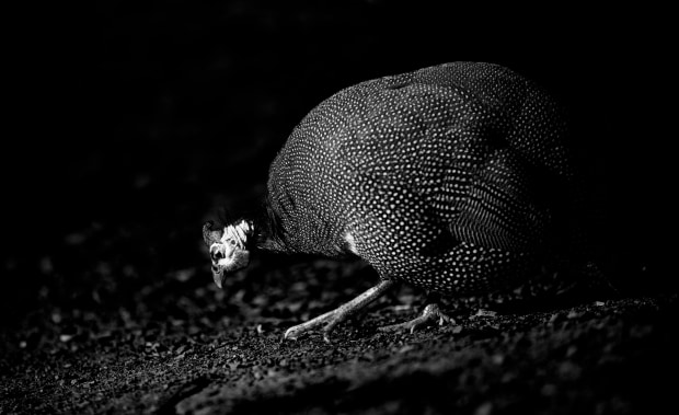 Guinea fowl wandering the paddock