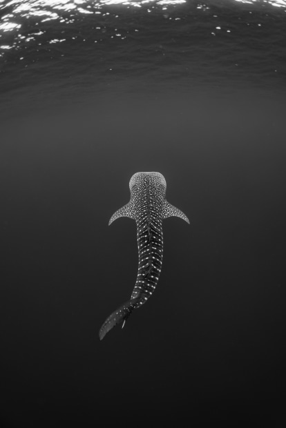 A whaleshark ascends to the surface on the Ningaloo Reef, Western Australia. Far less menacing than the shark from Jaws.