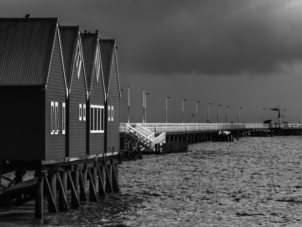 The last sun on the jetty before it gets squeezed out by an approaching storm!