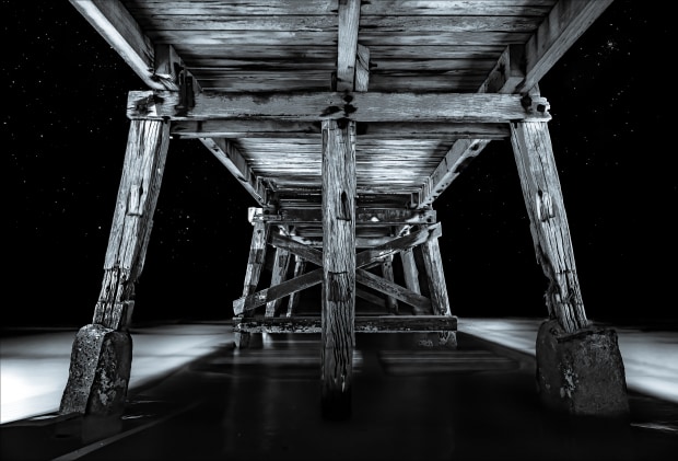 Beneath the jetty at night