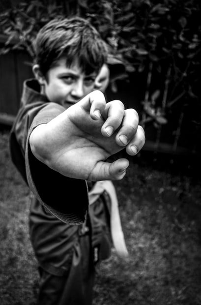 My 10 year old son practising his karate moves before his next grading, to gain his orange belt.