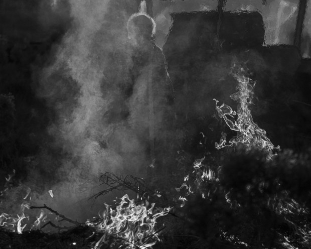 My man was burning the results of a big weed cleanup and loved the vision through the smoke leaning on his shovel