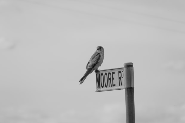 Suzanne Barker, kestrel on the street sign (ANIMALS 2022)