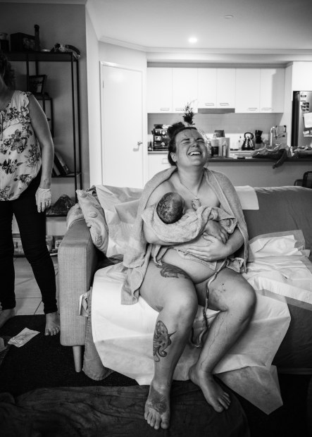 Just moments after birthing her baby at home, she's settles onto the couch, still damp from the birth pool, her body still trembling from the effort. Her baby on her chest, still attached by the cord-the placenta not yet delivered. Her arms cradle new life instinctively, her eyes scanning his tiny face with disbelief and wonder. There's no fanfare, just the quiet hum of birth in its most natural form. No medication, no interventions. She throws her back in pure, unfiltered joy !!