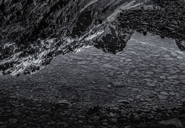 While out photography the setting sun on the surrounding mountain peaks I was struck by the reflection in the shallows of the lake. I felt that the underlying rocks adds a different dimension and texture to the image.