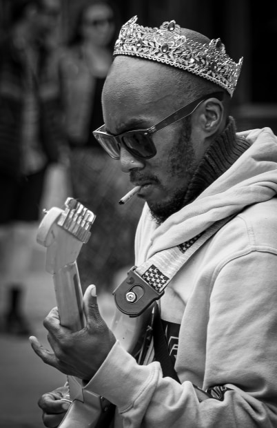 This busker was a great musician but his layback nature made it difficult to engage with his personality. This image captures this story well I feel.