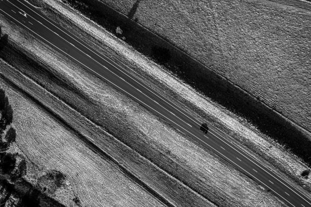 A lonesome traveler heading down the highway of life.