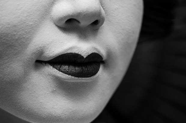 The perfectly painted lips of a Geiko in Kyoto Japan.