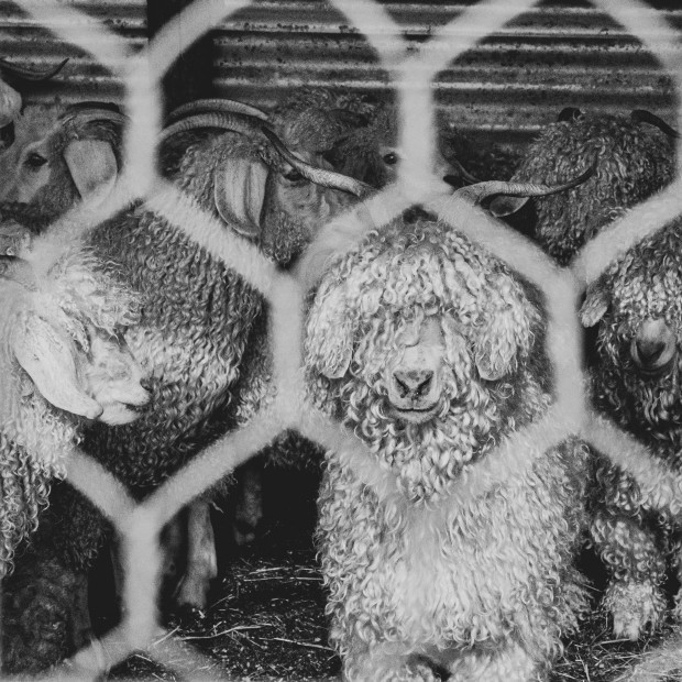 Goats waiting to be sheared - locked up in the shed ready for the shearer to grab them.