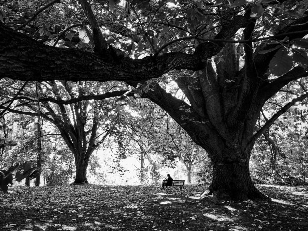 Image captured with an IPhone 8. Botanic Gardens, Melbourne. Not posed – subject unknown. Colour digital image converted to Black & White. Taken 16 March, 2024.