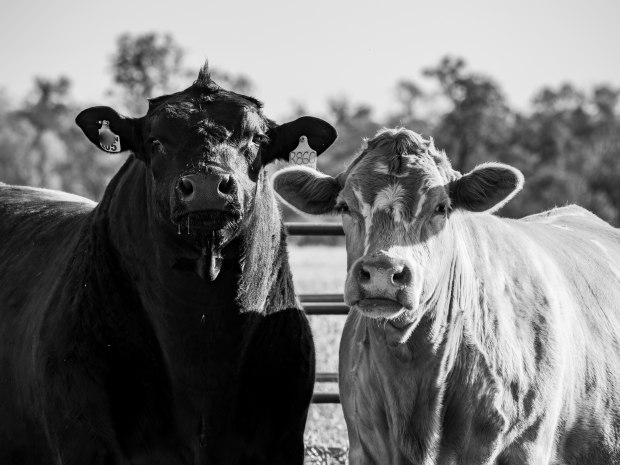 Our bull and cow in paddock near house on our farm and they were looking at me to see what I was doing.