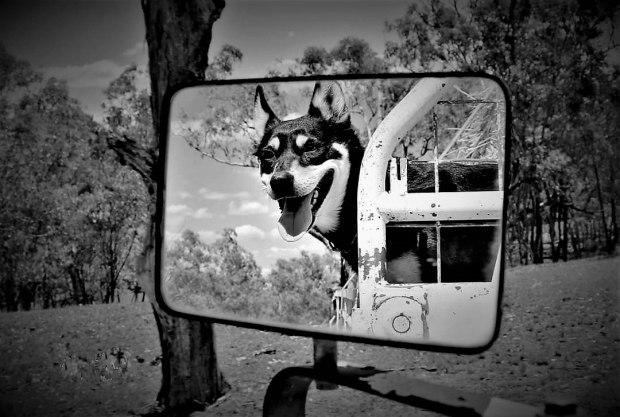 Our black and tan kelpie always keen and alert looking for cattle and waiting for the masters command